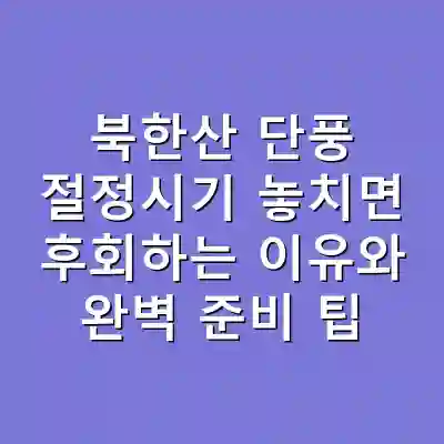 북한산의 단풍 절정 시기는 주로 10월 하순부터 11월 초까지입니다. 코스별로 절정 시기가 다르니 미리 계획하는 것이 중요합니다. 준비물과 촬영 팁을 통해 북한산의 아름다운 단풍을 완벽히 감상하세요.
