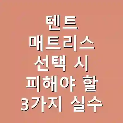 텐트 매트리스 선택 시 피해야 할 3가지 실수는 잘못된 사이즈 선택, 부적절한 재질 선택, 예산 설정의 실패입니다. 이 요소들을 고려하여 선택하면 보다 나은 캠핑 경험을 할 수 있습니다. 마지막으로, 매트리스 선택 전 충분한 정보를 수집하여 후회 없는 구매를 하시기 바랍니다.